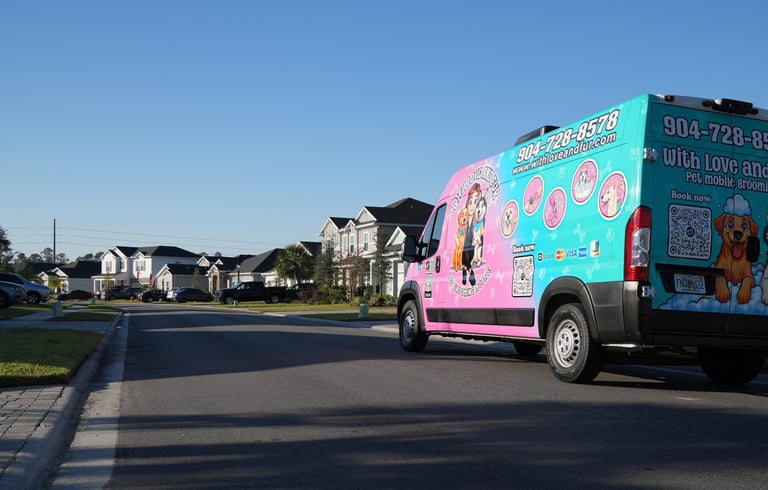 Forget the stress of car rides, long waits, and cages that make your dog anxious. With WITH LOVE AND FUR, the grooming salon comes right to your doorstep. Your best friend enjoys an exclusive service in a safe, comfortable environment—while you save time and peace of mind.
